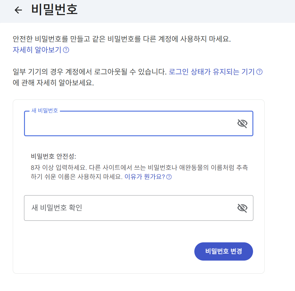 비밀번호 탭에 들어가셔서 빈 칸에 변경하실 패스워드를 입력 해주세요.