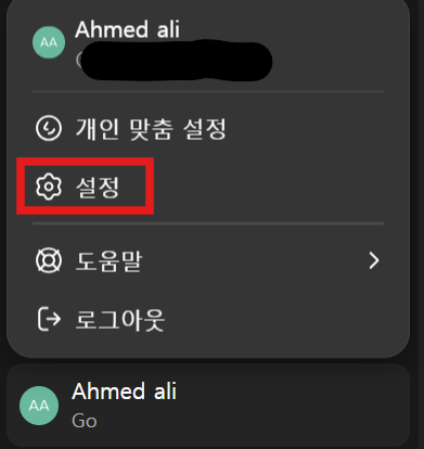 메인 화면이 보이면 좌측 하단에 계정 프로필을 클릭 합니다.