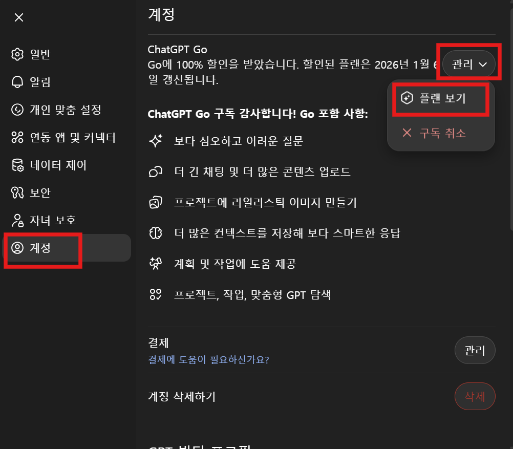 Chat GPT-Go plan 12개월 설정을 위한 안내 입니다.
