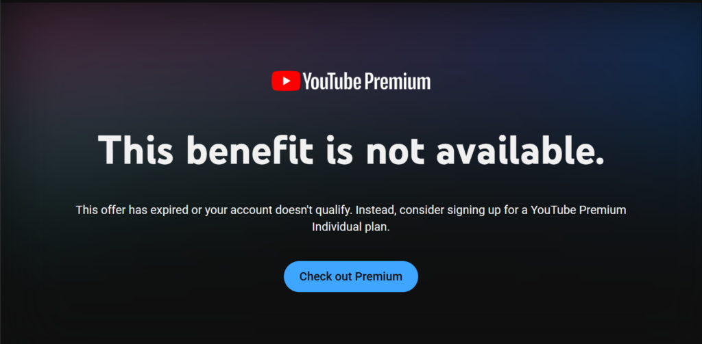 해당 문구가 뜨게 되면 활성화 불가 하니 반드시 유튜브 프리미엄 한 번도 이용한 적 없는 계정으로 진행 해주세요.