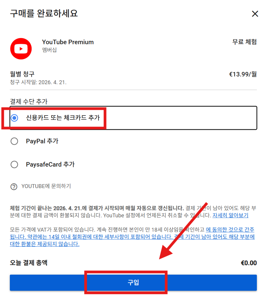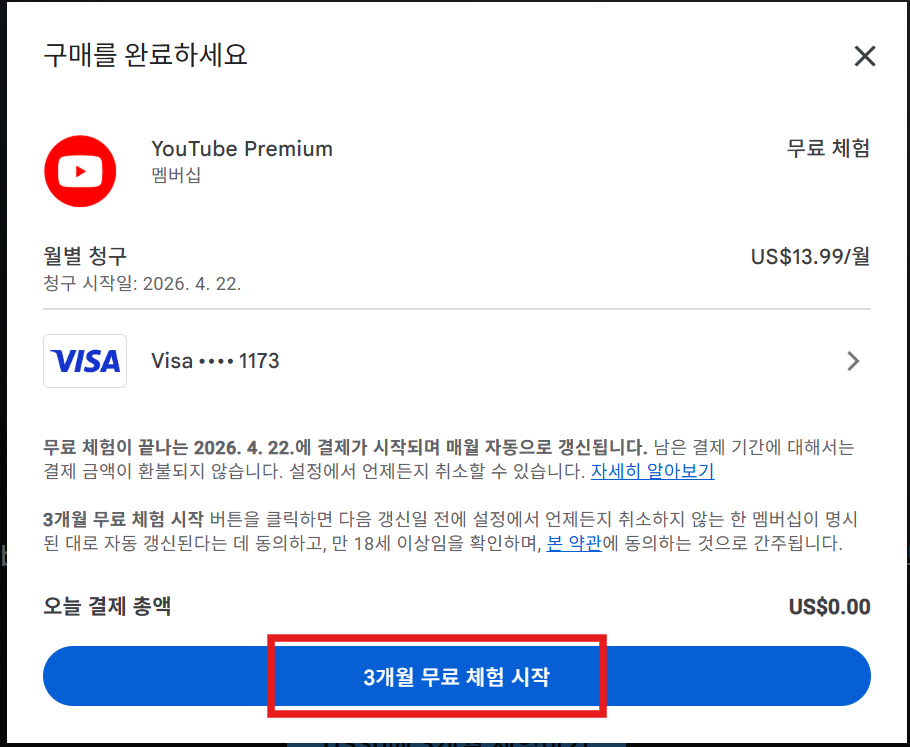 유튜브 프리미엄 개인 3개월 링크 등록 방법
